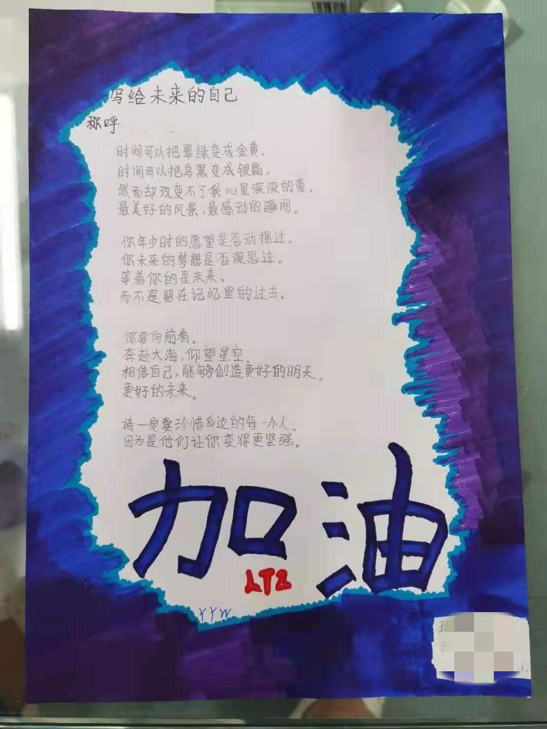 书信作品让同学们坐上时光穿梭机,写给未来的自己。他们把对未来的期待、对梦想的追求、亦或是对明天的向往写在了一封封对自己的温暖话语里,边诉说、边成长为那个有爱、有梦的自己。