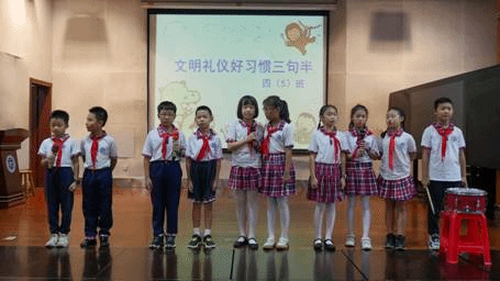紧接着,四(3)班和四(5)班同学,分别用讲故事和三句半的形式,告诉我们养成好的习惯对我们来说百利无一弊,并且为我们养成好的文明习惯,指明了方向。