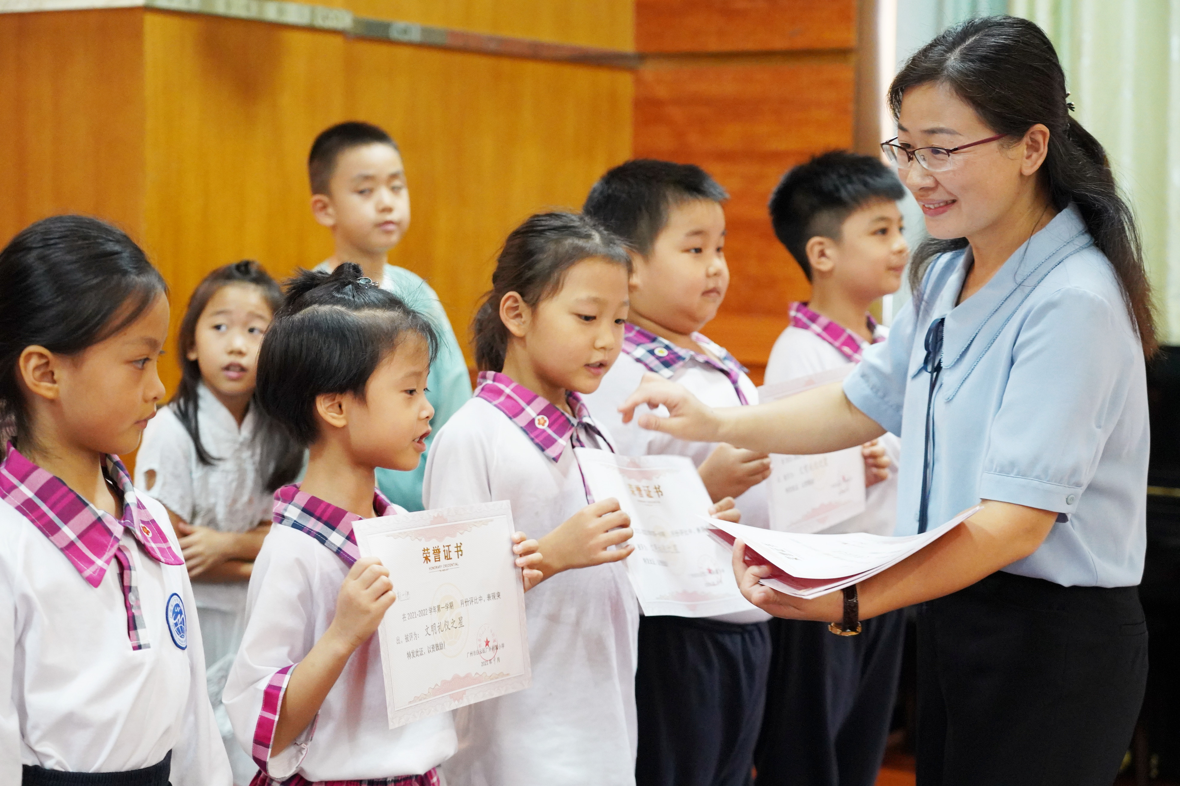学校开展了文明礼仪活动,一年级全体同学积极响应学校号召,涌现出一大批严格遵守校规校纪、言谈举止文明大方、关心集体、乐于助人的文明学生,经各班推荐评选出30名年级“文明礼仪之星”。级长李炜星老师和聂芹老师分别为获奖同学颁奖。