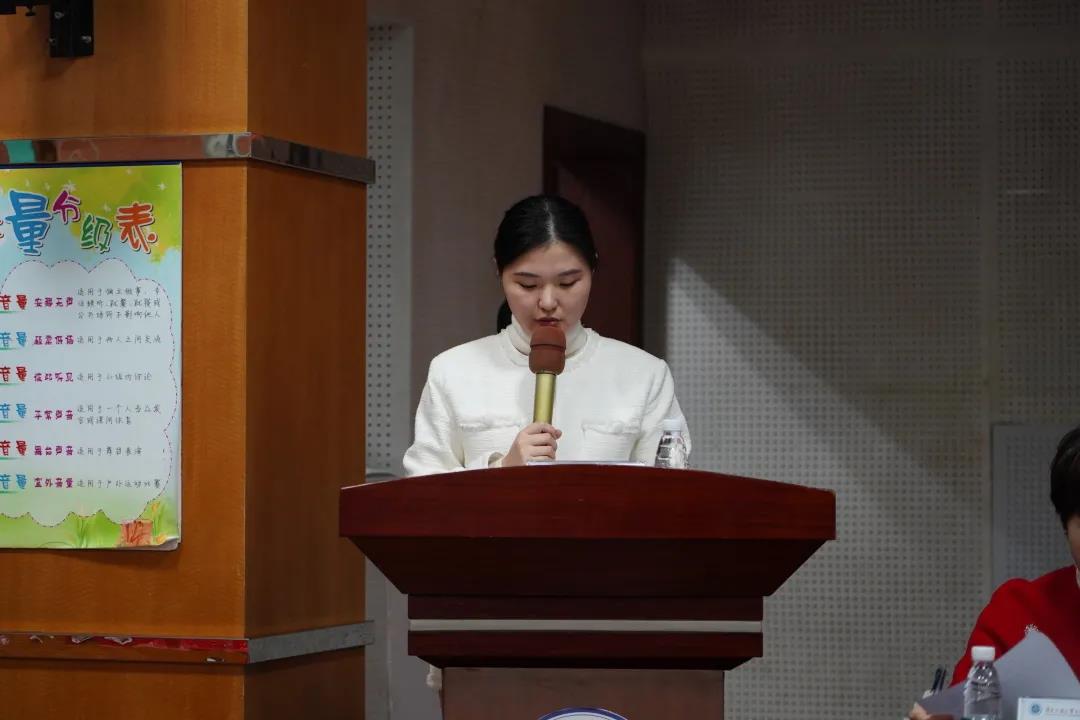 校团委书记黄婧老师做提案工作报告。她在报告中表示,本次学生代表大会提案征集工作得到了各班老师和同学们的充分配合和积极参与。截止至上周三,大会共收集到有效提案表41 份。提案组将提案征集表进行了内容整理,发现同学们的关注点主要集中在学生管理、教学内容、公共服务三大方面。提案真实反映了同学们的诉求,集中体现了以人为本的时代主流思潮,揭示出学生崇尚健康生活、全面发展的积极追求。