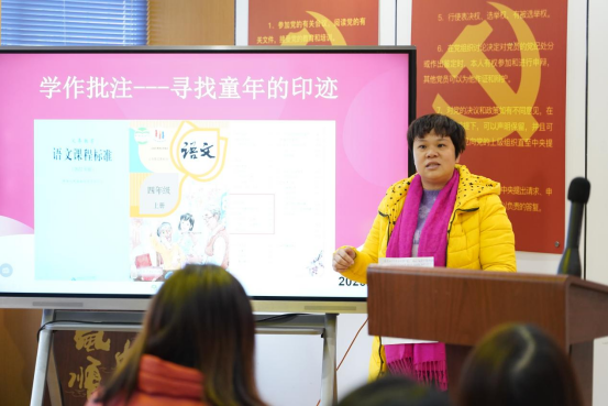 四年级组林智珊老师以“学作批注——寻找童年的印迹”为题做了分享。林老师抓住四年级上册单元素养提出的提问策略和批注方法,引导学生将批注落到实处。通过林老师教学中的实例,看到了学生能初步把握文章的主要内容,体会文章表达的思想感情。学习圈点、批注等阅读方法。能对课文中不理解的地方提出疑问,乐于与他人讨论交流。