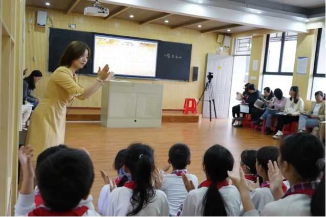 朱晓月老师今天的音乐课堂授课内容是一首澳大利亚民歌《剪羊毛》,这首歌曲以生动诙谐的笔调,描绘了澳大利亚人民在羊毛丰收季节的劳动场景。旋律轻快活泼、富有律动感,表现了丰收之际的喜悦之情和工人们积极乐观的生活态度。朱晓月老师的这节课针对四年级学生的年龄特点,采用了多种教学手段和方法,注重学生听觉能力的培养,课堂中利用杯子进行节奏律动的游戏环节,让孩子们在轻松快乐的氛围中感受和体会到源于劳动的音乐律动。