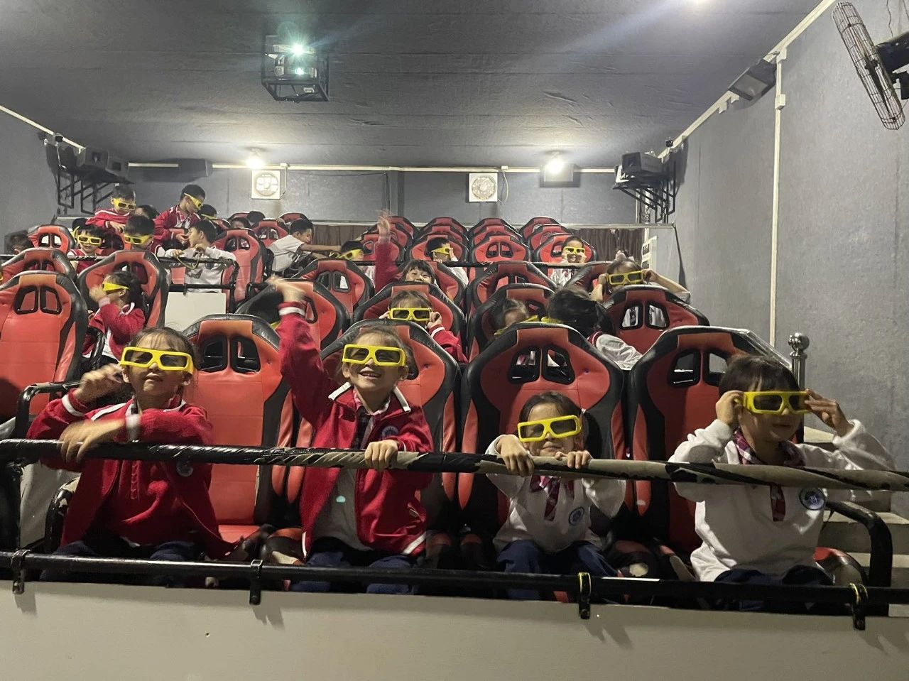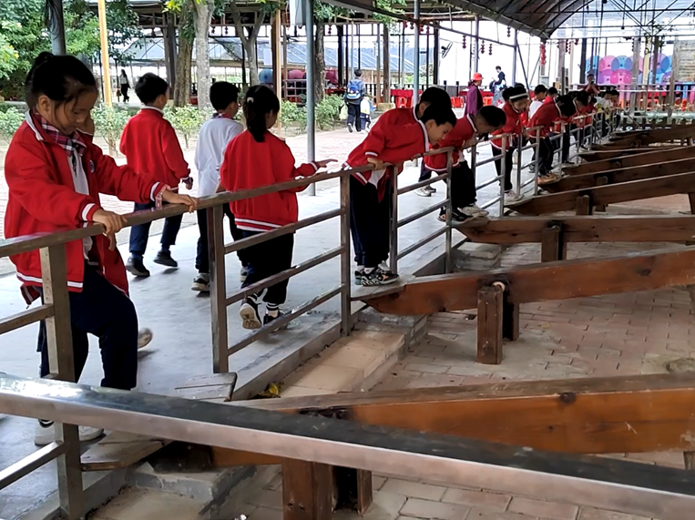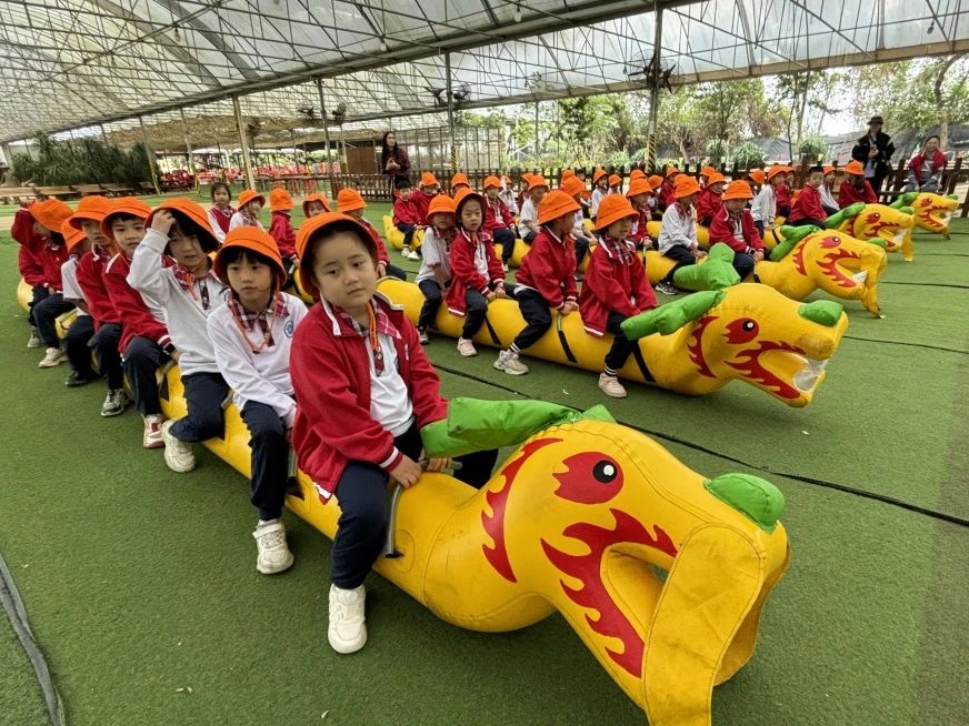 劳动之余,为了充分感受丰华园的风光,在秋天的旷野感受季节之美,孩子们还开展了旱地龙舟比赛,坐小火车、推石磨,体验了惊险刺激的4D电影等,尽情劳动,尽兴玩耍,尽情欢笑。