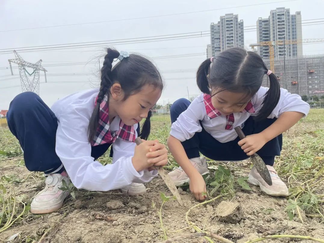 孩子们一到番薯地,就像一群小麻雀般叽叽喳喳地散开。他们的小脸蛋红扑扑的,眼睛里闪着兴奋的光。蹲下身子,小手握住铲子就开始挖,松软的泥土在他们的努力下飞溅开来。有的番薯露出半截身子,红褐色的外皮带着泥土的芬芳。“哇,我挖到啦!”每当一个孩子高高举起番薯,那大大的番薯就像胜利的奖杯,其他孩子也不甘示弱,欢笑声在番薯地中回荡。