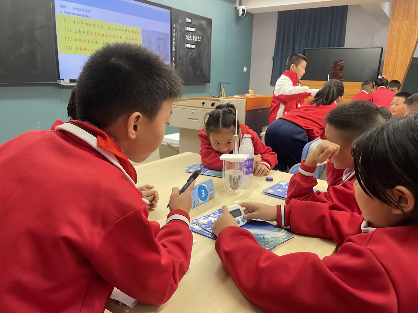 紧接着,是两节生动有趣的实验探究课。首先,白云外国语小学的谢家乐老师带来了《水结冰了》一课。谢老师通过创设温度不断下降的环境,让学生观察并记录水结冰的过程中的各种变化,引导学生认识到当水的温度下降到0℃时,会开始结冰,从液体状态凝固成固体状态,并且体积会增大。学生们在实验中兴趣盎然,积极动手操作,不仅观察到了水结冰的现象,还深入理解了物质状态变化与热量变化的关系。