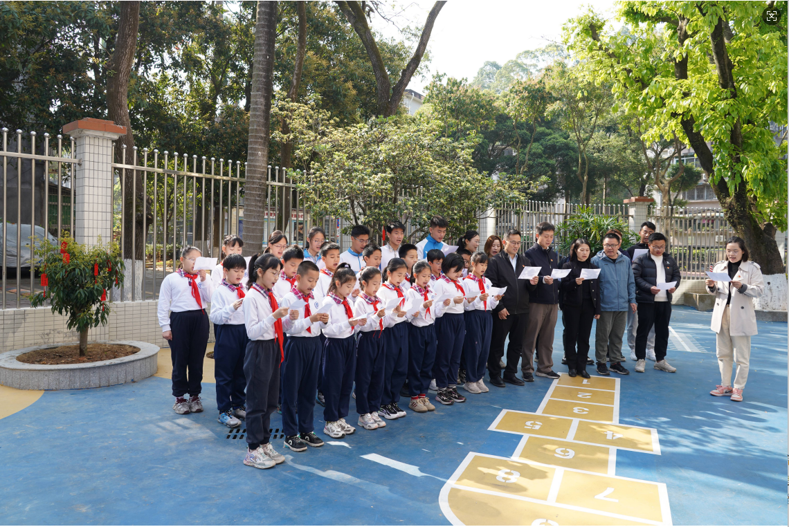 3月20 日上午 9 点,白云外国语中小学东边的小广场上热闹非凡,一场别开生面的 “大手拉小手”共同种植一棵树的活动在此展开。