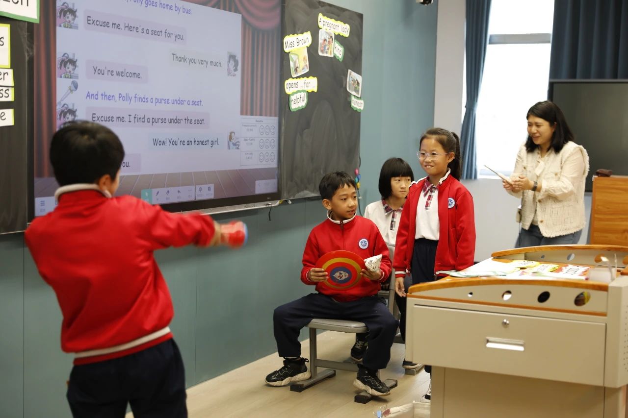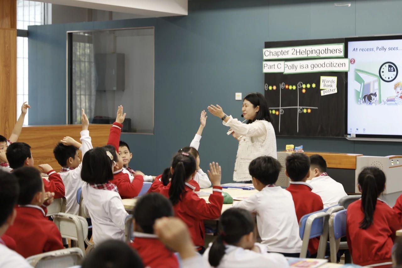 由陈夏驰老师执教的《Polly is a good citizen》,是新思维英语三年级下册第二单元的故事部分。课堂创新采用“学科+德育”双线融合策略,既攻克“描述公民行为”等语言目标,又通过“山区帮扶计划”思辨讨论深化社会责任意识。整节课堂以阅读课的方式呈现,先泛读全文,再通过图片,问答,表演等方式精读对每个故事环节进行学习。陈老师通过提问的方式引导学生们从图片、文字等材料中,提取关键信息,鼓励学生们大胆表达自己的猜测和想法,从而发展学生们发展思维能力。她的课堂活动设计将语言实践拓展至垃圾分类、爱心义卖等真实生活。在课程的最后,她引导学生思考为什么要做个好公民,教育学生只有做好公民才能让我们的生活环境变得更好。