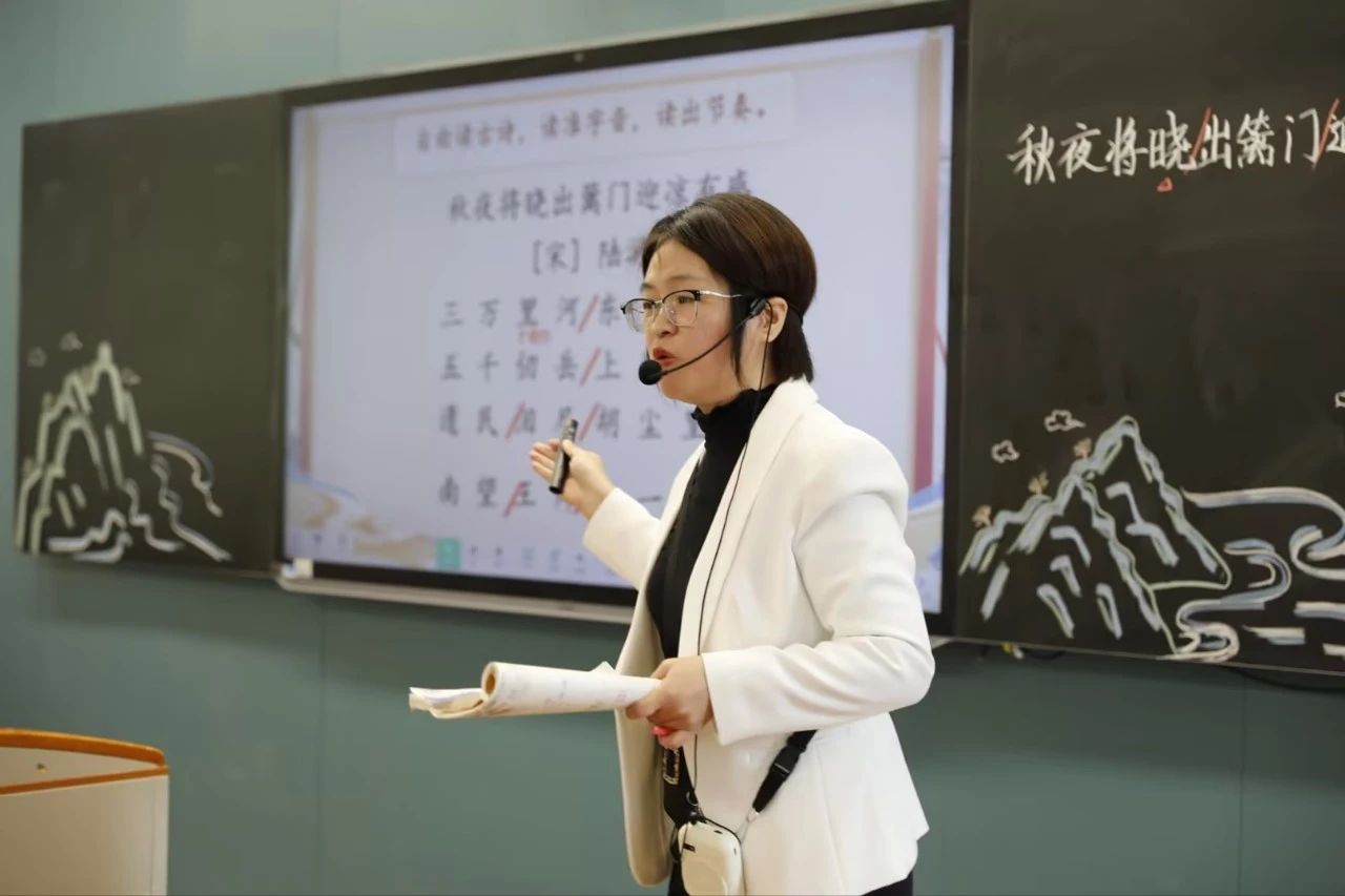 由刘璐老师执教的《秋夜将晓出篱门迎凉有感》,是部编版教材五年级下册第9课《古诗三首》的第二首古诗。刘老师通过背景故事的讲解,带着孩子们穿越千百年走近诗人陆游。精致的“山河”板书,动听的背景音乐,让孩子们很快入情入境。课堂上刘老师通过朗读指导、小组合作、情境体验、创作表达,让学生体会了诗歌的意境,感受到诗人对沦陷区百姓的同情和对国家命运的忧虑,领悟出陆游的爱国情怀。结尾时,刘老师通过“拨通陆游电话”的形式,让孩子把心里想对陆游说的话,说给数字人“陆游”听,实时收到“陆游”的反馈,孩子们特别开心。这个教学环节别出心裁,有创新又有学科融合。既激发了孩子们创作的兴趣,也给“穿越千百年走近诗人”的情境画上了圆满的句号。