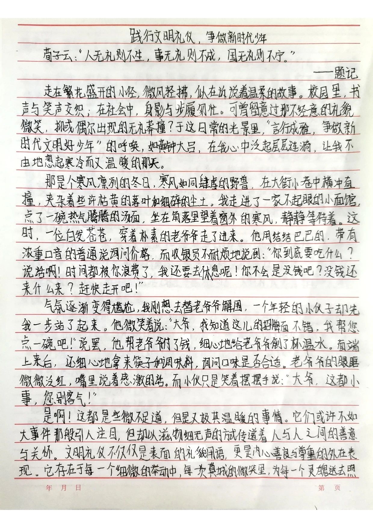 为深入推进校园精神文明建设,培养学生知礼明仪的良好品格,白云外国语中学于近阶段成功举办"言行成雅,争做新时代文明好少年"主题征文比赛。经过语文科组教师的专业评审,获奖名单正式揭晓,多篇优秀作品脱颖而出,展现了我校学子对文明礼仪的深刻思考与真挚感悟。