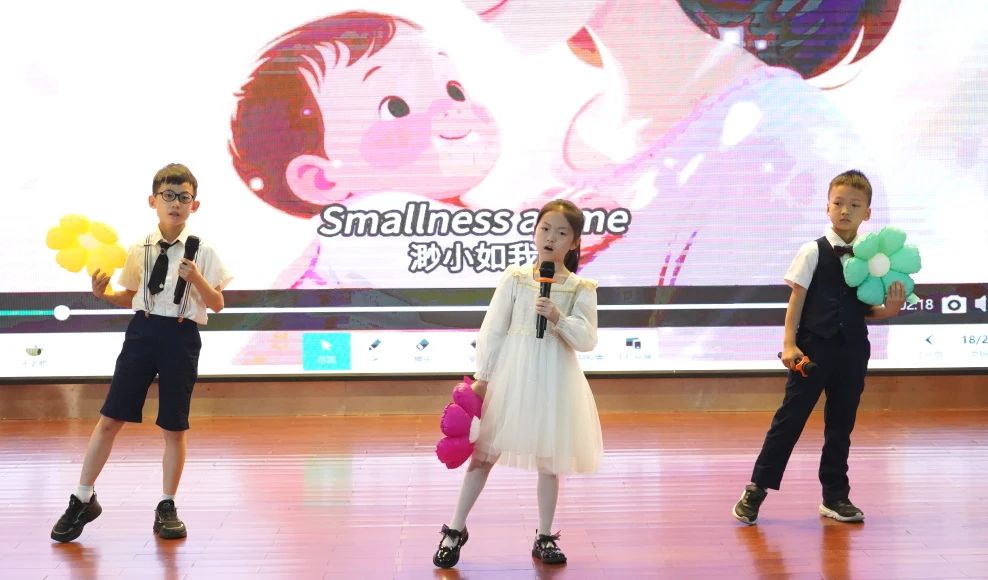 二(5)班《Dance Monkey》,彭胡君君、李伊宸以动感的节奏,将这首流行歌曲演绎得充满活力。节目《Proud of you》,王馨杨、王若南、俞瀚文和关芯悦四位同学以深情的歌声,传达了对彼此的骄傲和鼓励,展现了真挚的友谊。