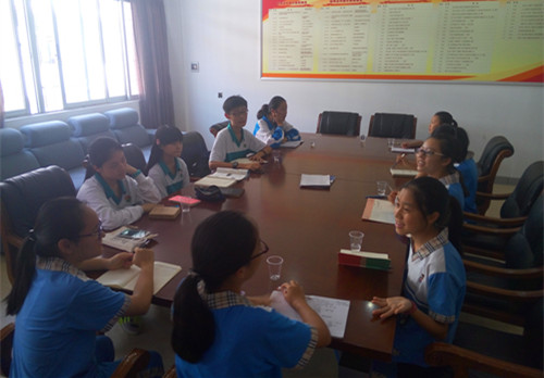 首先,学生处林主任向大家介绍了一下附中和外校的历史渊源;接着,团委书记王老师向广外外校的团委干部介绍了我校中学生“校三团”的基本情况。随即,两校的学生干部进行了深入的交流。