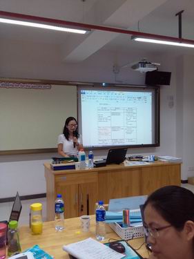每天从早上8:15上课到下午5:30放学。白天听课晚上讨论完成作业,第二天展示,专家点评再次修改整理。五天的学习我们的思想在这里碰撞,我们倾听我们反思,我们困惑我们质疑,我们争论我们实践。大家都沉浸在思考和顿悟中。专家的精彩点播颠覆了我们以往的教学,先进的教育理念一度让我们迷茫。在五天的反复思索和探究中我们艰难的前行。我们不断的争辩、研论、分工合作实践证实。最后我们还以海报的形式展示本次的收获、感想和困惑。这是充实的五天,是痛苦的五天。我们勇敢面对,在理论与实践的反复探究中,在朱蒲老师入木三分剖析的下我们终于豁然开朗。