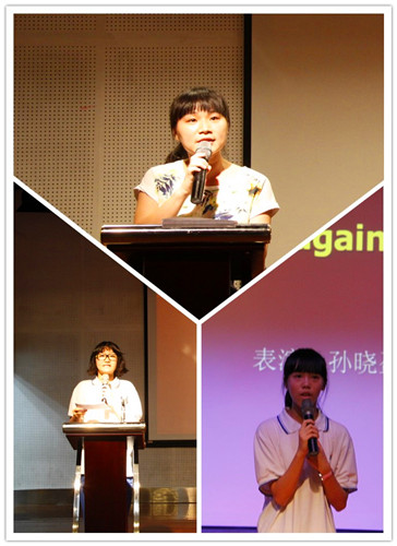 接下来,初三毕业生郑楚乔代表同学献给母校的心声,一同回首初中三年的温馨时光,一同开启心灵的感恩之旅,一起踏上崭新的人生旅程。孙晓盈同学的一曲《see you again》又带给大家无限离别的感慨。紧接着,熊靚老师代表全体老师表达了对同学们美好前程的衷心祝愿。