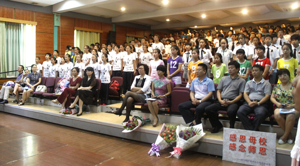 学生代表向全体毕业班的任课老师与学校领导献花