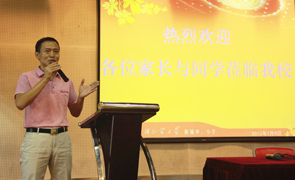 随后,吴玉爱校长介绍了学校的办学规模,师资队伍等。他特别强调了学校的几大改变:给学生们的减负增效;教师通过教学交流提升课堂质量;丰富多彩的活动培养学生综合能力;增强外语尤其是小语种课程的开设,给学生提供不同的语言环境等。这些改变不但可以开阔学生的眼界,也提高了学生整体的素质格调。紧接着,吴校长对家长提出三点建议:不要迷信辅导班,给孩子安静独立思考的空间;加大英语温习力度,英语水平决定孩子层次的高低;阅读量提升,提高孩子气质。