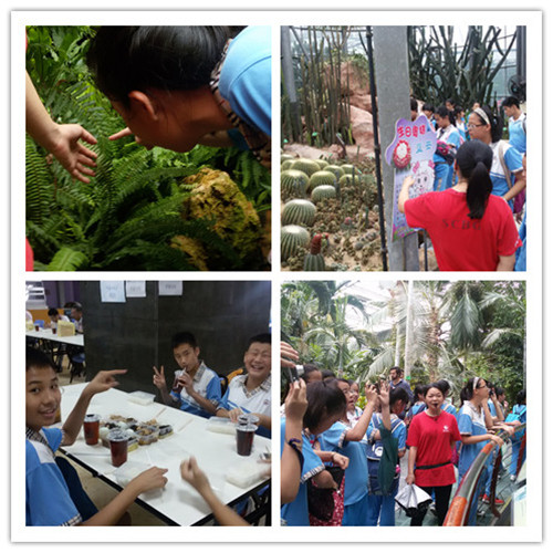 下午在科普专家的带领下,孩子们来到华南植物园开展一场别开生面的生态科普之旅。华南植物园占地面积300公顷,引种热带亚热带植物6000种,拥有世界一流的木兰科、姜科植物专类园,是全国科普教育基地和广州市"十佳旅游景点"。在导游的解说下,同学们首先参观了大型展览温室群,包括热带雨林植物、沙漠植物、高山植物和奇花异草。