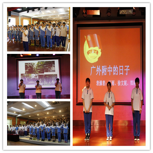 在活动即将结束之际,播放了团委委员莫志鹏同学为初二年级特别制作的视频,引导同学们“莫等闲,白了少年头”,让在场的师生感慨万千。同时,团委副书记王雨同学、团委委员郑浠桐同学、徐文妮同学演唱了改编歌词的《广外附中的日子》歌曲,众同学更是沉醉其中。