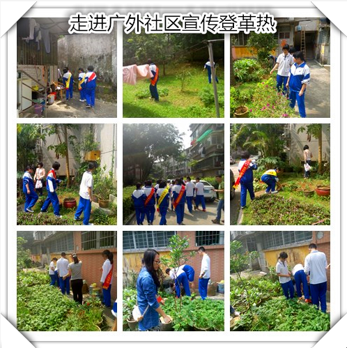 本网讯4月,正是登革热盛行的月份。为了学校周边和社区的卫生安全,预防和宣传登革热,2014年4月28日我校团委和社区居委利用课余时间宣传登革热疾病以及清理社区中的积水以预防登革热疫情的发生。
