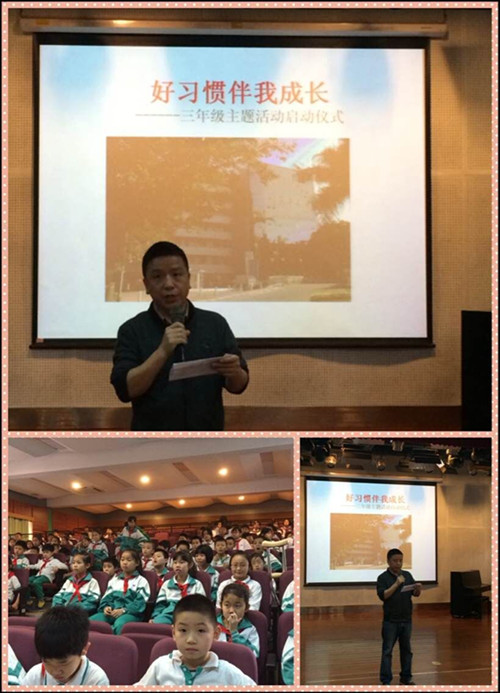 本网讯 3月23日上午,三年级全体师生齐聚云山礼堂,为本学期年级活动《好习惯伴我成长》做启动仪式。