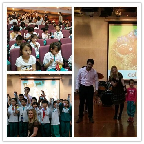 三年级有单词串串连、30秒记单词、夹彩蛋答问题等活动表现出来的扎实的英语功底让外国考官们赞叹不已。一、二年级的游园活动主要围绕彩蛋进行,投彩蛋、夹彩蛋、运彩蛋、找彩蛋、彩蛋保龄球等游戏既娱乐又刺激,引得孩子们惊呼连连,笑声不断。