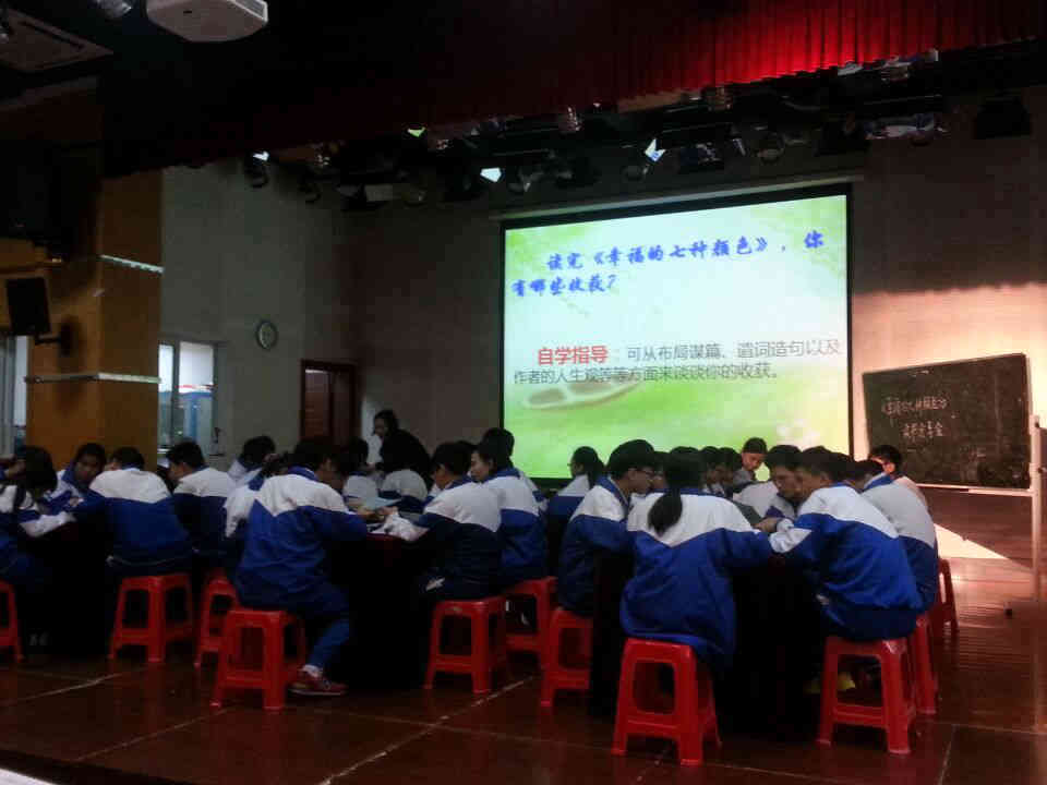 我校初三级语文老师刘艮艳代表学校进行了毕淑敏《幸福的七种颜色》阅读分享会。课上刘老师面带微笑,循循善诱,引导学生积极思考,不少学生踊跃发言,每一位学生发言完毕刘老师都会进行精彩的点评,整堂课松弛有度,精彩的言论层出不穷,掌声不断。