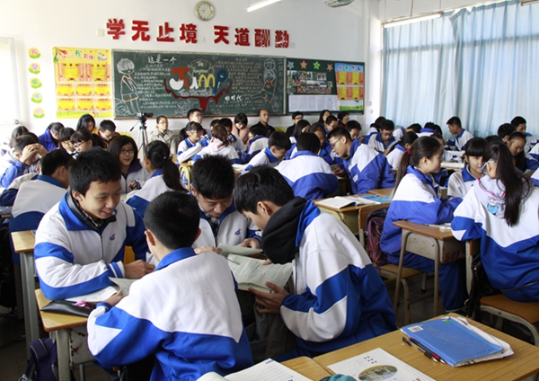 本网讯12月30日上午第三节课吴文凤老师在初二(2)班展示了一场精彩的英语优质课。 陈媛媛副校长,学部曹旭飞主任,教学处林旭丽主任及全体英语老师前往观摩,还吸引了外来的客人到现场听课学习。