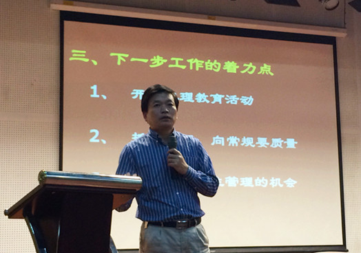 最后吴校长从调整办学方向、调整学校管理构架、学校外语教学、学生学习生活的改进以及学校的收获和学校未来的方向几个方面发表了讲话。吴校长提出在提高学生综合素质、培养学生兴趣的同时,学科知识也要共同抓,不仅仅注重学生的成绩,更要重视学生的综合素质。在外语特色方面,吴校长强调了当下英语技能的重要性,提出学校为建设英语特色而做出的努力及接下来的规划。在讲话的最后,吴校长深切呼吁“关注成长和学习要同步,用心教育孩子”。