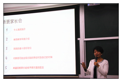 接着,海晏老师结合自己多年的成功经验,跟大家分享了她总结出的七种家长会的召开形式:集中交流式、颁奖典礼式、读书交流式、展览汇报式、小组讨论式、智慧分享式、教育会诊式。每一种家长会的形式都用到了大量的例子和图片,深入浅出地为老师们解读每种形式的家长会所带来的成效,赢得在座的各位老师阵阵掌声。最后,海晏老师还强调,在实际家长会中,可以因时因势进行“变式”,也可以有机“组合”,让家长会的功能与意义得到更大的发挥。