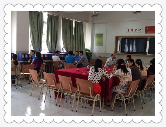 课后,两校的学科老师与领导进行了深入交流。汇侨中学的陈主任表示,两校生源接近,有很多相同之处,应该互相学习,共同进步。汇侨中学的张主任向我们介绍了他们学校2015届初三的备考策略。1、计划具体可行,目标明确,落实到人;2、实行分层教学;3、备课组深入研究中考考试规律、考点及中考改革趋势;4、加强学生的思想工作,开分层学生会议。林主任也介绍了我校的初三备考方案。