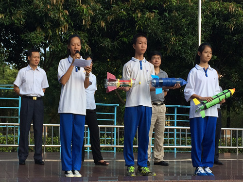 本届科技节是学校科普系列活动的浓缩,是学校办学特色的呈现,是全体师生魅力展现的一个平台。开幕式上,罗书记热情激昂的开幕词后,李方老师介绍了本届科技节的精彩内容:小学部富有特色的科技“亲子活动”、环保科技小制作;中学部叶脉画制作、水火箭模型制作与发射、趣味化学实验大PK等。接着,初二同学向全体师生展示了水火箭模型并以精炼的语言讲解了制作原理,增强了同学们对科技的向往与期待。