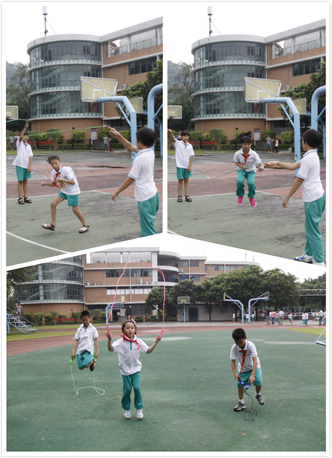 三年级和五年级的同学都进行的是跳大绳比赛,在规定的时间内,跳绳个数多的班级获胜,孩子们排好队,井然有序出场,其余的都激动地为自己班上同学加油,团队意识和班级荣誉感在此体现得淋漓尽致。