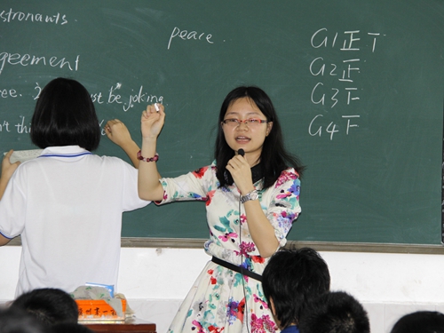 本网讯On Wednesday afternoon, May 21, 2014, one of English teachers ,Miss Zeng Xinyan gave us a wonderful demonstration lesson, from which a number of teachers learn a lot. In her class, Miss Zeng is good at motivating her students so that they are willing to take an active part in it. She is also good at catching students’ eyes and makes them concentrate on English learning. Student-centered is another major feature in her class. In her class, students are very pleased to work in group to study and communicate for presenting because they are interested in Zeng’s class. They really did perfectly.