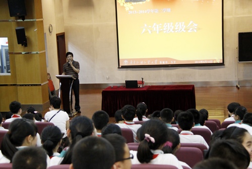 会上梁海文老师肯定了六年级同学们在学习、行为方面取得的进步,并表示全体六年级老师将在最后两个多月教学中,尽心尽力地为每位学生的成长与进步而努力。接着,袁宇迪副校长对我校六年级优秀毕业生直升初中部的奖励办法作了说明,鼓励同学们认真学习,不断进步。随后初中部团委书记王琪老师从初中生需要什么;如何应对初中生活;附中的特色课程、特色班、社团、活动开展情况如何等进行了说明。