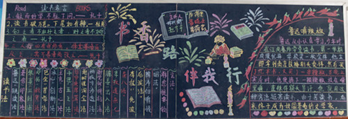 活动中,各班同学积极采集读书资料,精心设计版面。他们的作品色彩艳丽,内容丰富,有“读书名言”、“读书感言”、“佳词佳句摘抄”等。同学们通过此次活动尽情体验着阅读带来的快乐与收获,同时也展现了阅读带来的智慧与才气。(小学部学生处)