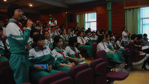 课上,范老师就如何读书、如何分析人物形象、如何领悟作者所要表达的情感的方法等都作了详尽而又易掌握的指导,再加上课件的辅助,整堂课都深深地吸引着孩子们。礼堂内不时传出朗朗的读书声及雷鸣般的掌声。范老师精彩的讲解激发了孩子们读经典、说经典、讲经典的热情,指引孩子们养成良好的阅读习惯,不断提高审美修养,夯实文学底蕴。