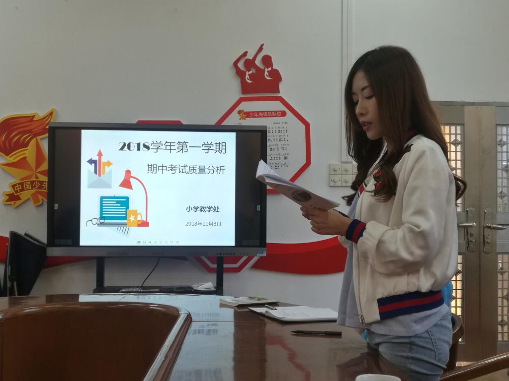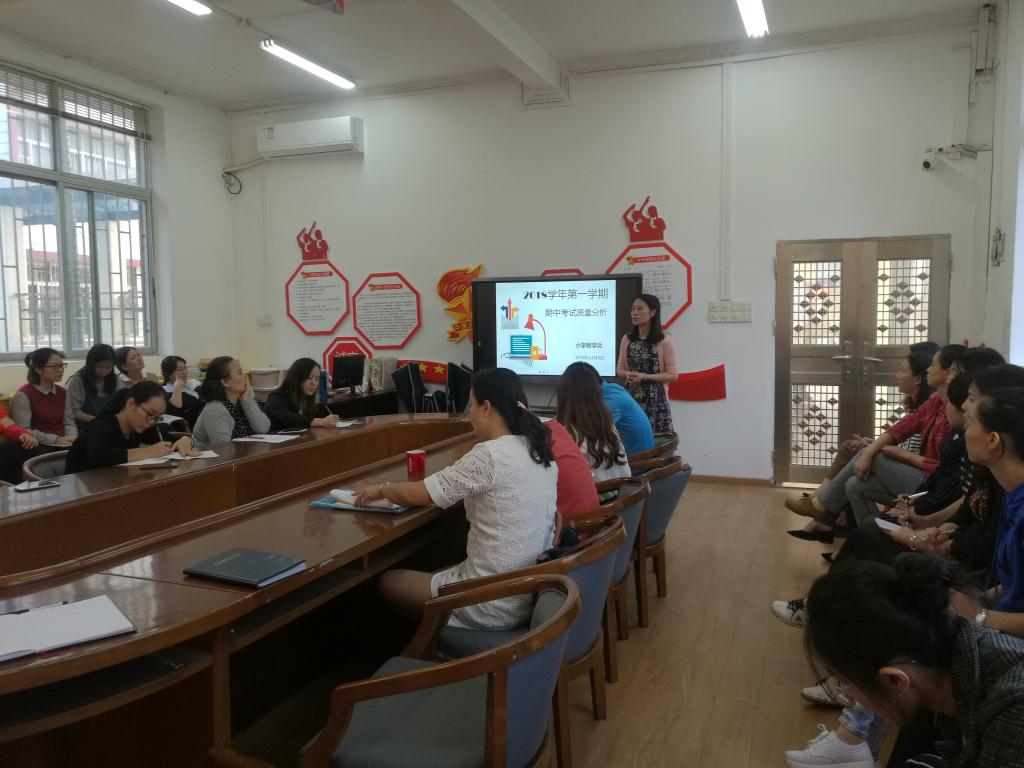 本网讯 为了如实地评价前半学期教学的质量,找出教学中存在的问题,及时调整教学策略,在小学教学处的组织下,四、五、六年级语数英老师于11月8日下午召开期中考试质量分析会。