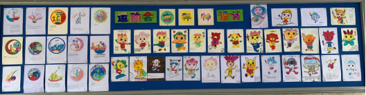 本届运动会优秀吉祥物、会徽设计作品已在学校架空层展出,成为运动会一道靓丽的风景。