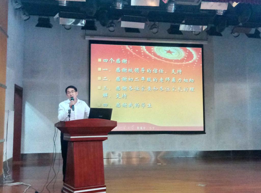 最后袁校长对初二学生寄予了厚望,并代表学校感谢家长对学校的大力支持,学校也会不断完善自身的不足,同时也希望家长继续加强与学校的沟通、加强与子女的沟通,为共同教育好孩子而努力。