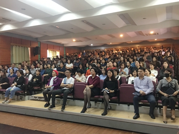 接下来,由教学处黄哲昙主任做了主题为“了解、沟通、共勉 ”的讲话,结合部门的工作,她先是介绍了四年级的课程开设,然后针对家长关心的问题,分析了四年级孩子在学习上产生差异的原因。最后,她十分中肯地教给了家长们如何去应对孩子这一阶段出现的问题,让家长们学会做一个尊重、理解孩子,会智爱而不溺爱孩子的好家长。