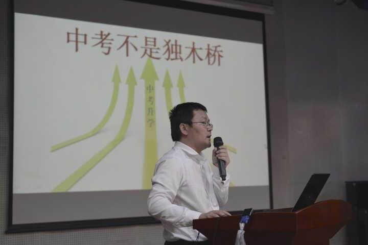 最后袁副校长发表了“同心协力,共创辉煌”的讲话。他分析了中考形势、政策变化,并给出应对措施,提出了“准确定位、关注学习习惯、营造良好的学习环境、陪伴、尊重”的建议。