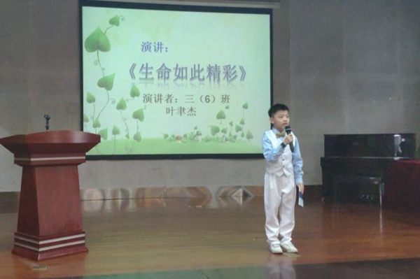 接下来是三年六班叶聿杰带来的演讲《生命如此精彩》。他用很多生活中的例子告诉我们生命不应被辜负,生命就应更精彩。