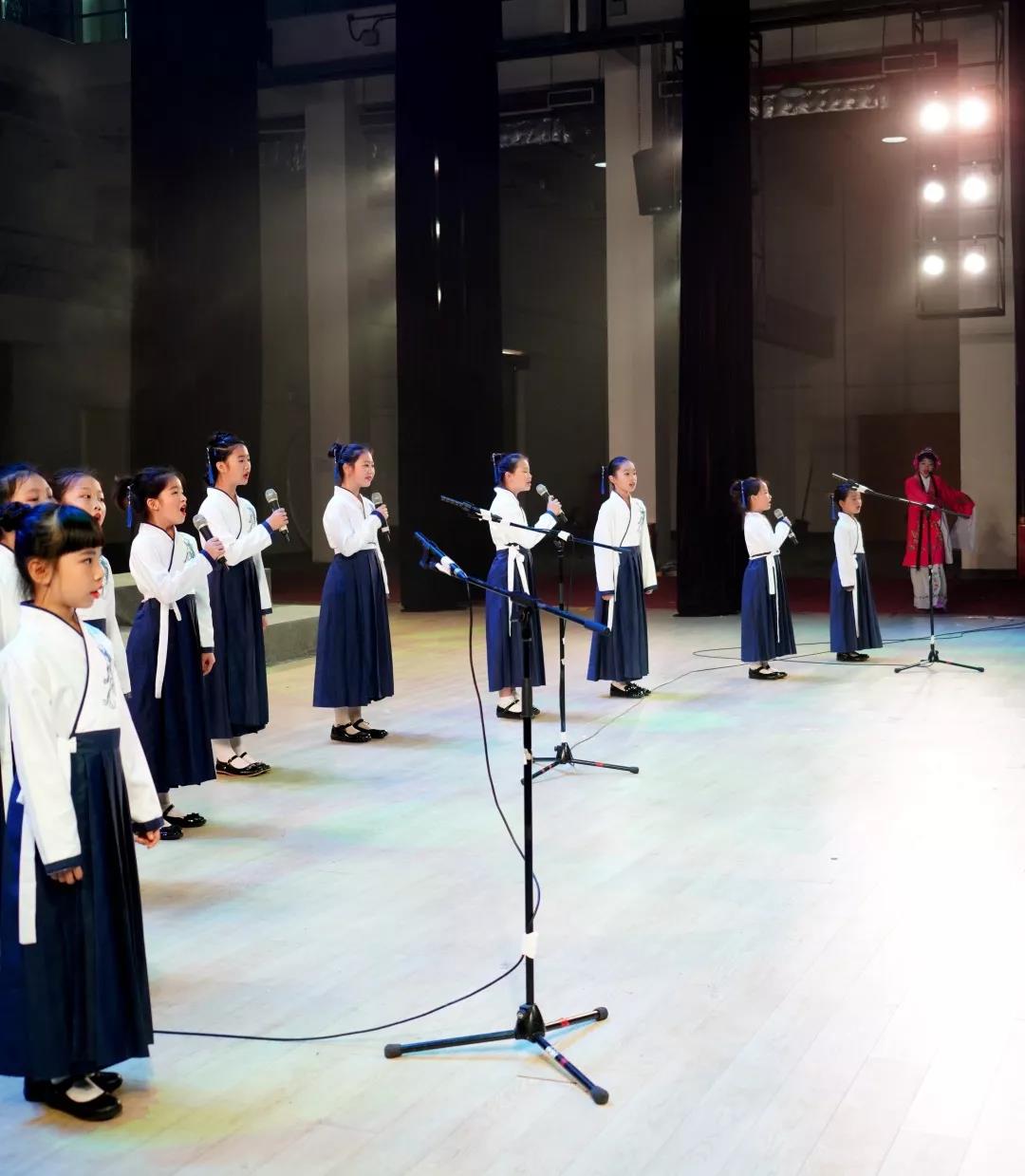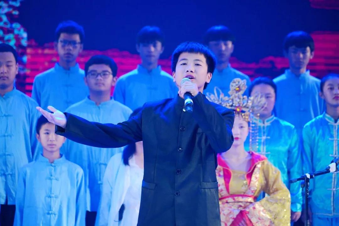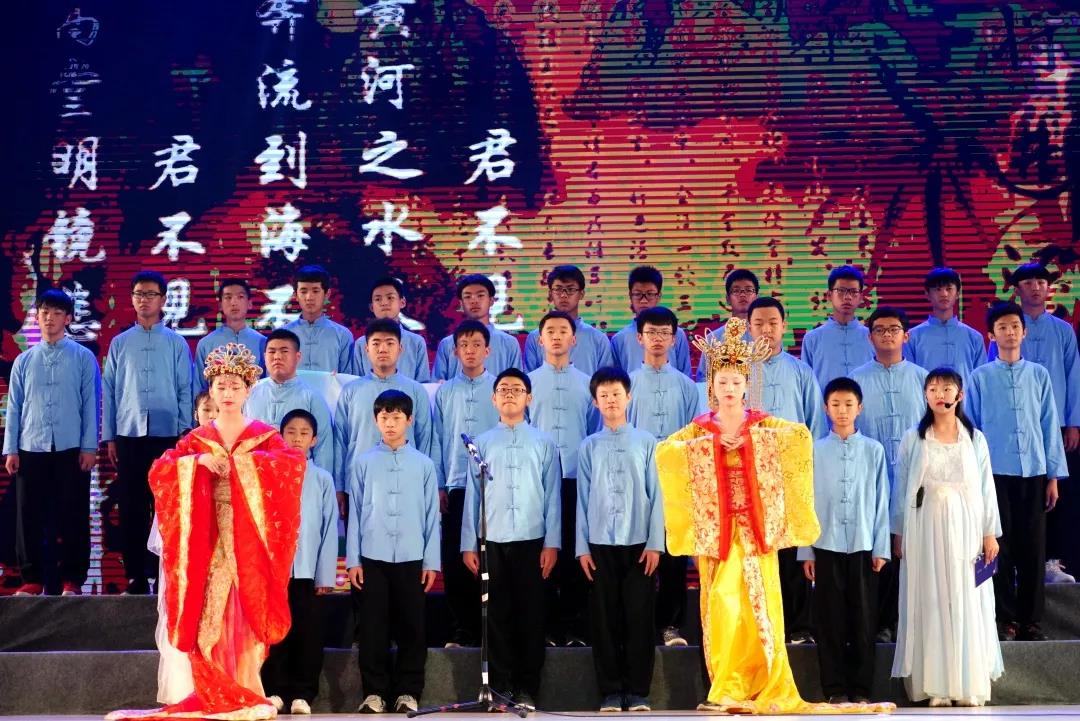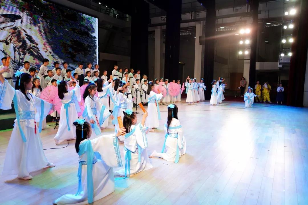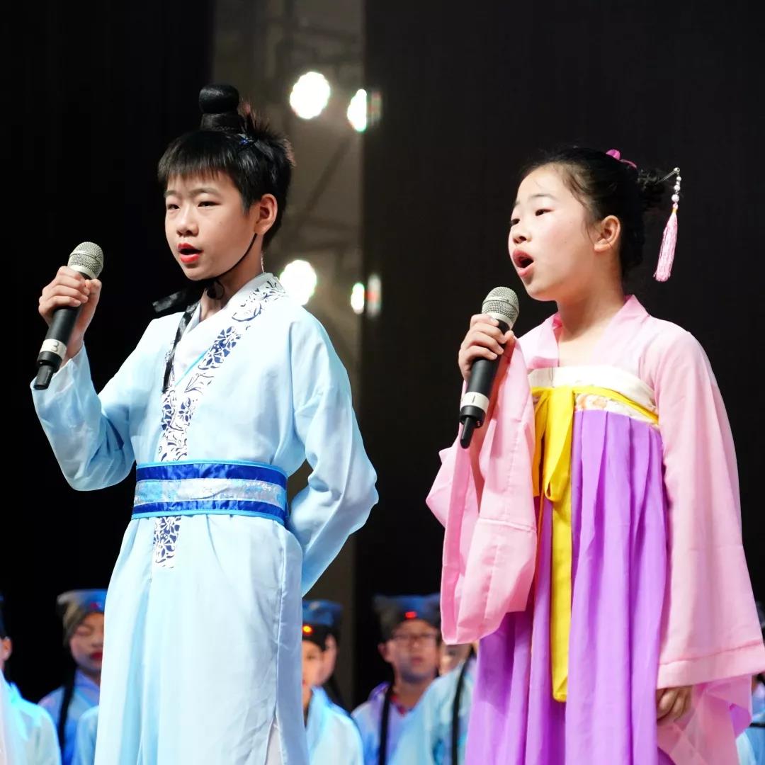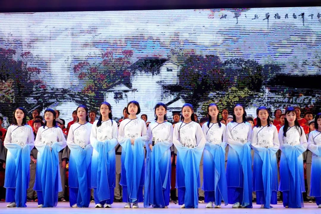 全校一至八年级全体学生悉数登场,表演中,学生们的诵读字正腔圆、有板有眼,在浅吟低唱中演绎了中华经典诗词的独特韵味,让整个会堂充满了传统文化的馨香。