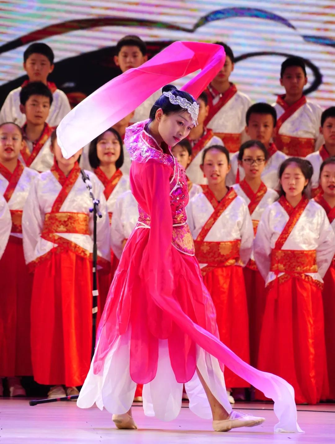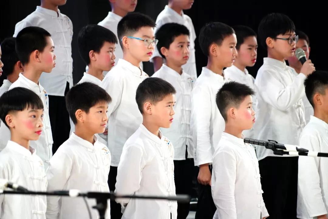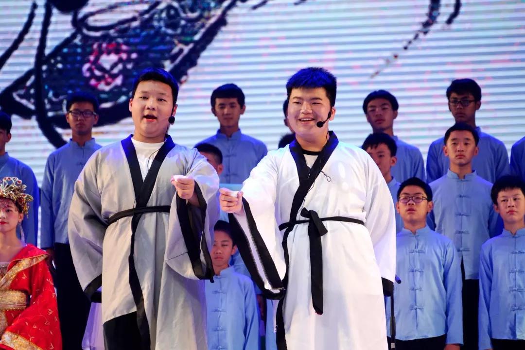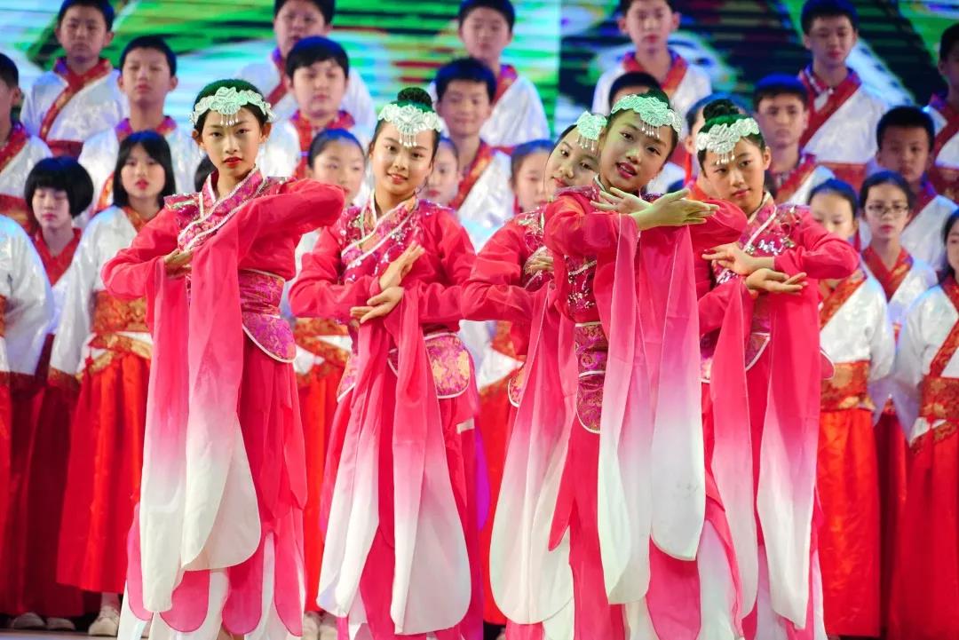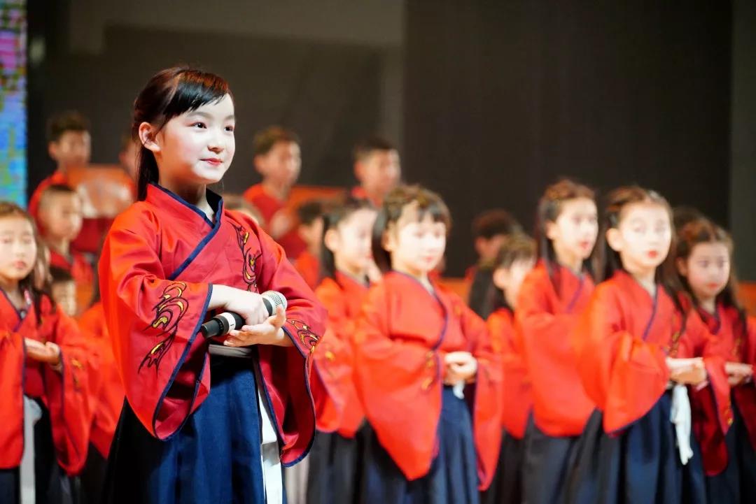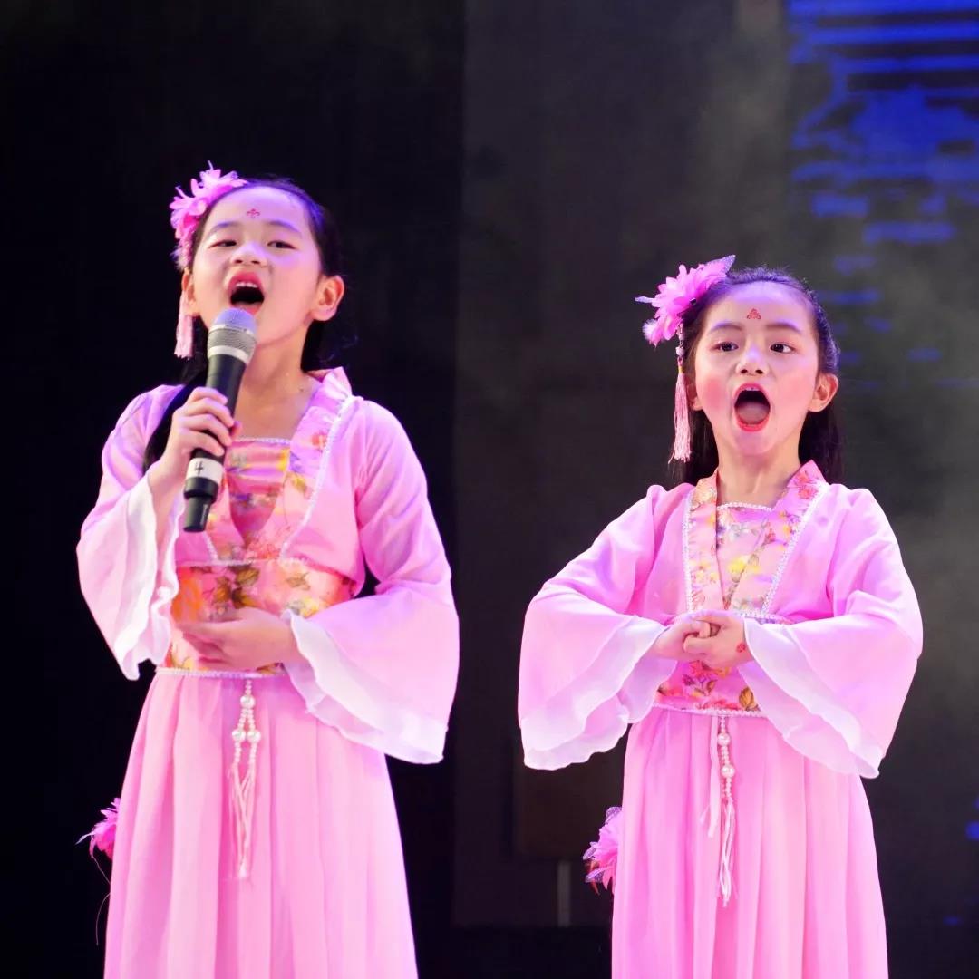 全校一至八年级全体学生悉数登场,表演中,学生们的诵读字正腔圆、有板有眼,在浅吟低唱中演绎了中华经典诗词的独特韵味,让整个会堂充满了传统文化的馨香。