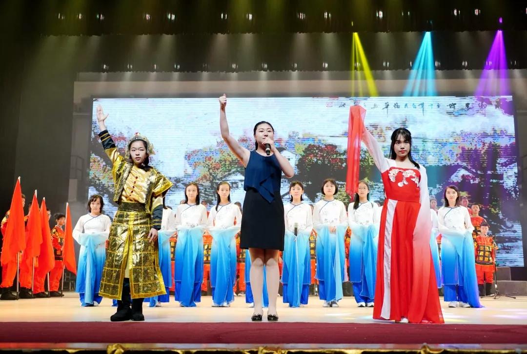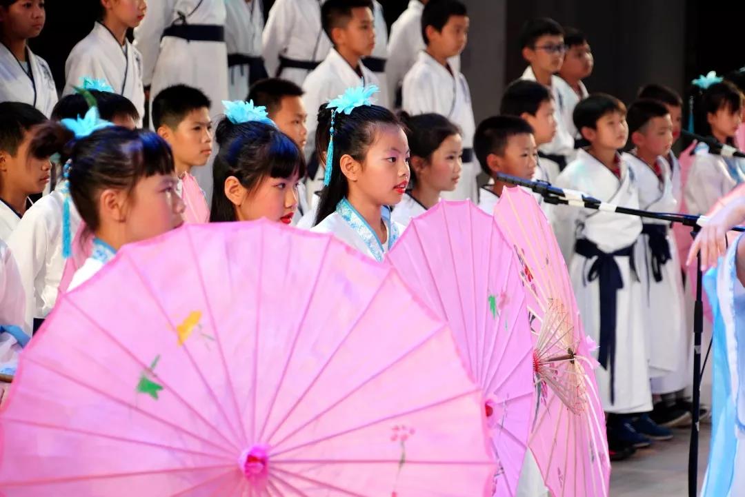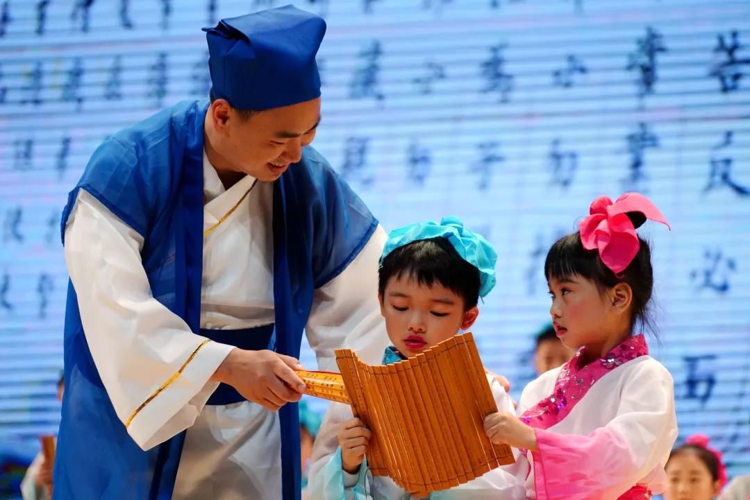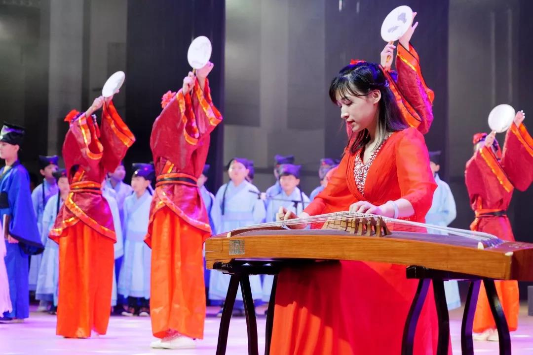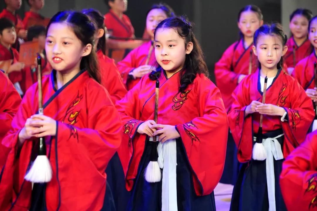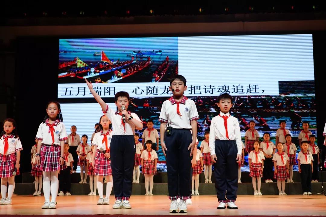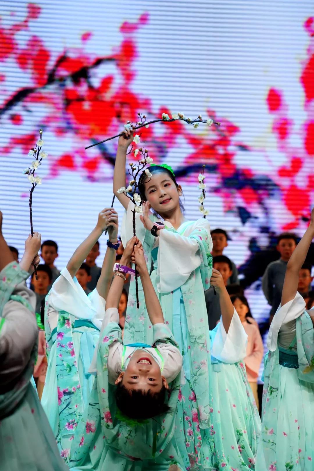 全校一至八年级全体学生悉数登场,表演中,学生们的诵读字正腔圆、有板有眼,在浅吟低唱中演绎了中华经典诗词的独特韵味,让整个会堂充满了传统文化的馨香。