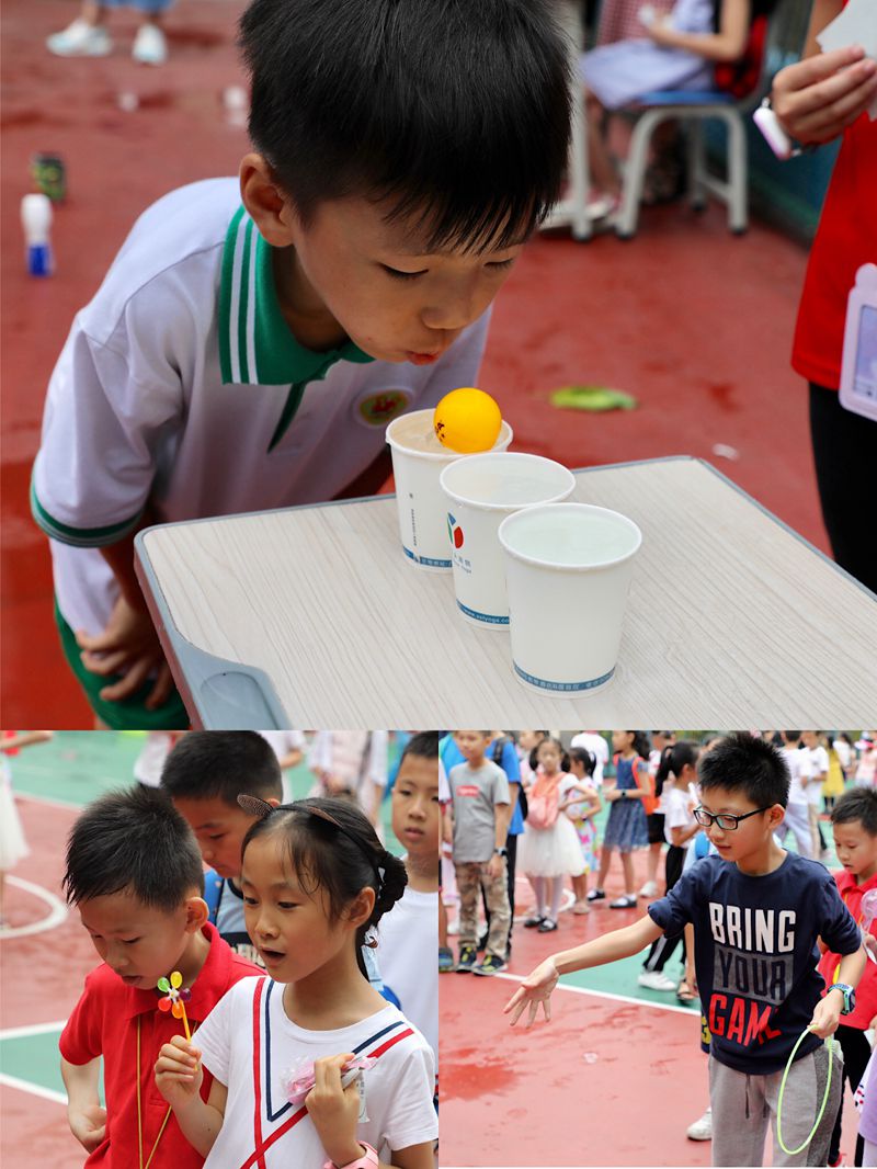 游园活动开始了,校园里热闹起来了,孩子们笑着、跳着,欢欣雀跃的奔向自己喜欢的游戏。每个班的游戏都很有特色:套圈、吹乒乓球、抢凳子、双人夹气球……游戏过关的还可以领取兑奖劵,这让游园会增加了不少乐趣,人群中不断传出阵阵欢笑。兑奖处人头攒动,孩子们三五成群,挥动着手中各种各样的小奖品,眼里闪动着兴奋的光芒。