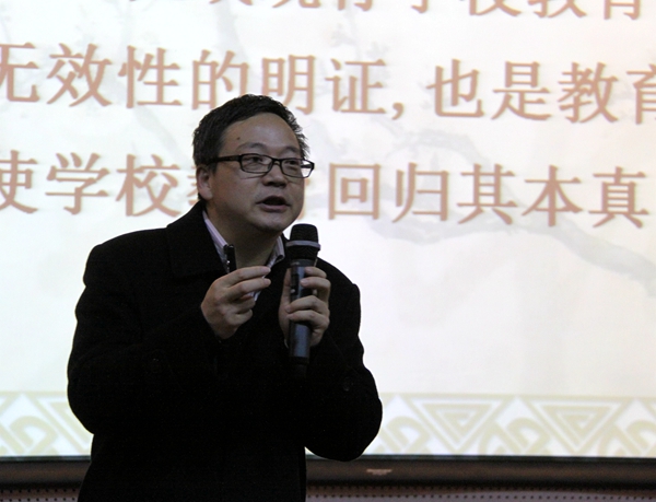 本网讯 3月17日下午,广州大学教育学院王卫东教授受邀到我校做“有效教学:基于学校教育基本矛盾的再审视”的专题讲座,学校全体教师聆听了讲座。