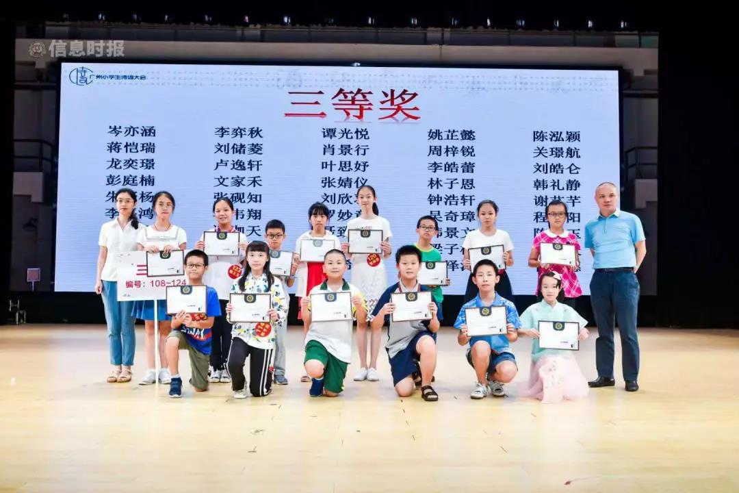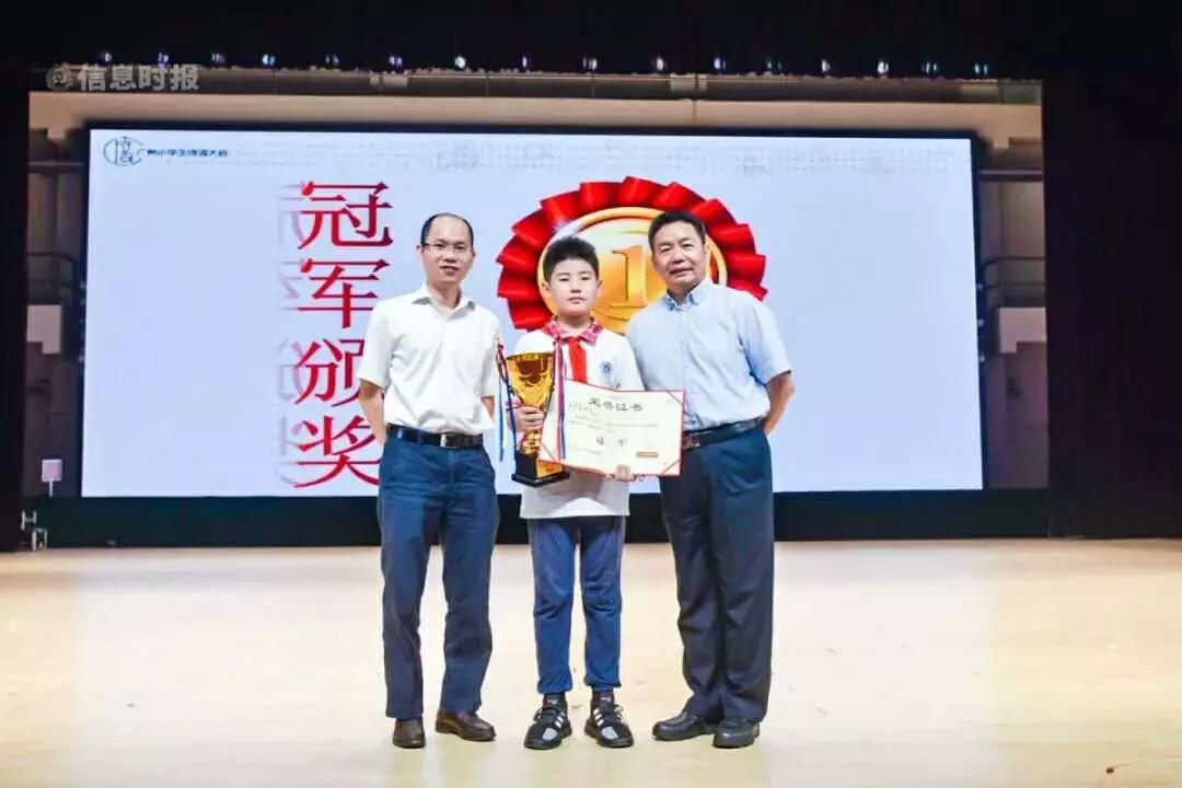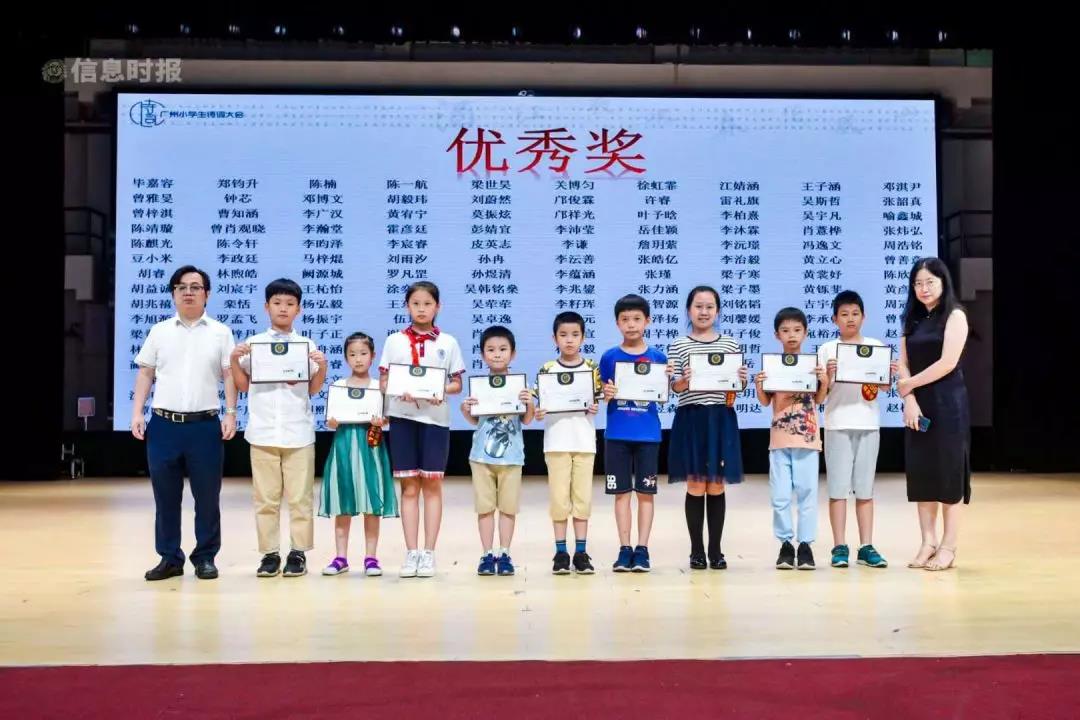 本网讯 为提倡学习传统文化,鼓励吟诵古诗词,6月16日,信息时报社联手新世界·凯粤湾、新世界·云逸、中国建设银行,在广外云山会堂共同举办2019广州小学生诗词大会总决赛。最终,来自我校五年级4班的邱梓铭同学一路过关斩将,勇夺冠军!