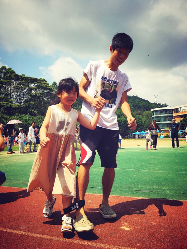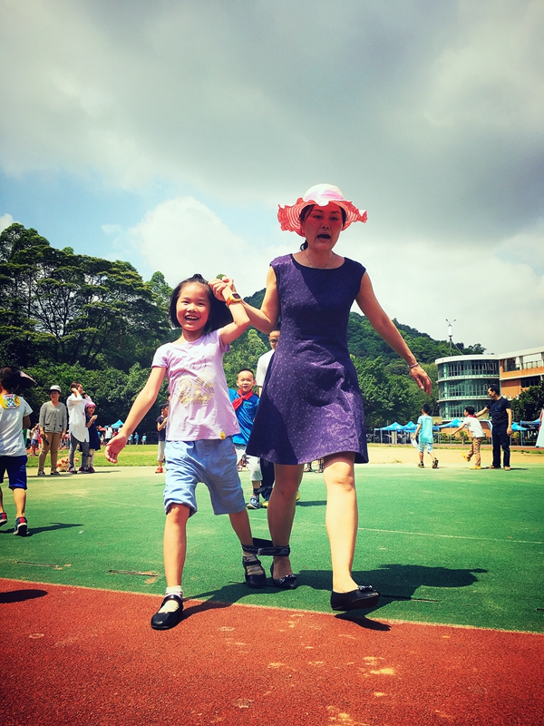 “大手拉小手”参加两人三足接力赛
