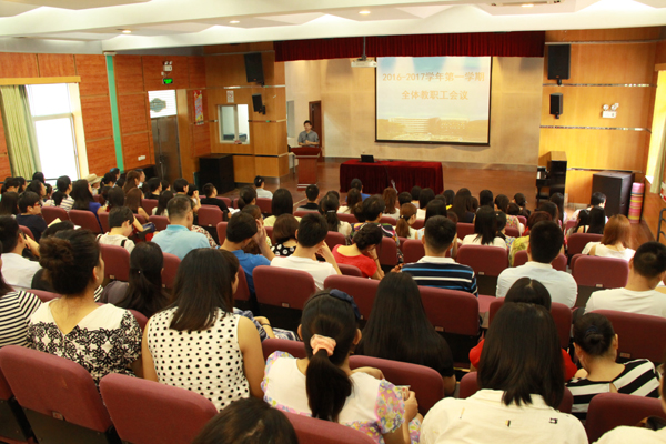 本网讯 8月29日下午,我校2016-2017学年工作布置会在学校礼堂举行,140名教职员工参加了会议。会议由陈又新校长助理主持。