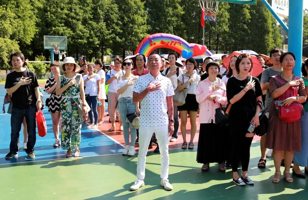 家长代表孟一凡带领全体家长庄严宣誓:我要以身作则,用心陪伴,控制情绪,家庭和睦,从容淡定,与孩子共同成长。